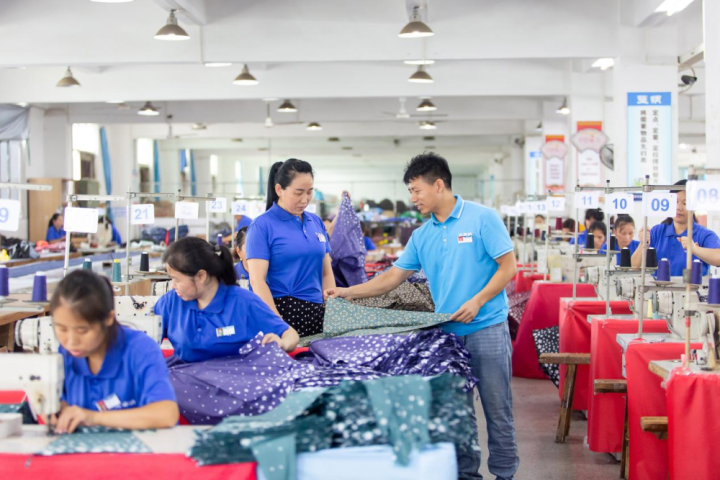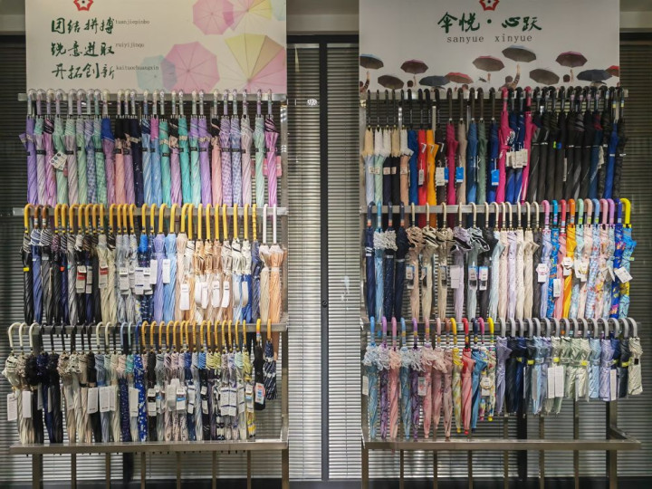 一把小小的伞,却浑身都是精细活,从大裁、拉边、小裁、合片,再到打珠尾、缝伞、成品包装,都需要大量人工。2020年,当地伞企联合高校,将伞中棒装配的10多个繁杂工序用机器替代,建成行业第一座“无人车间、熄灯工厂”。